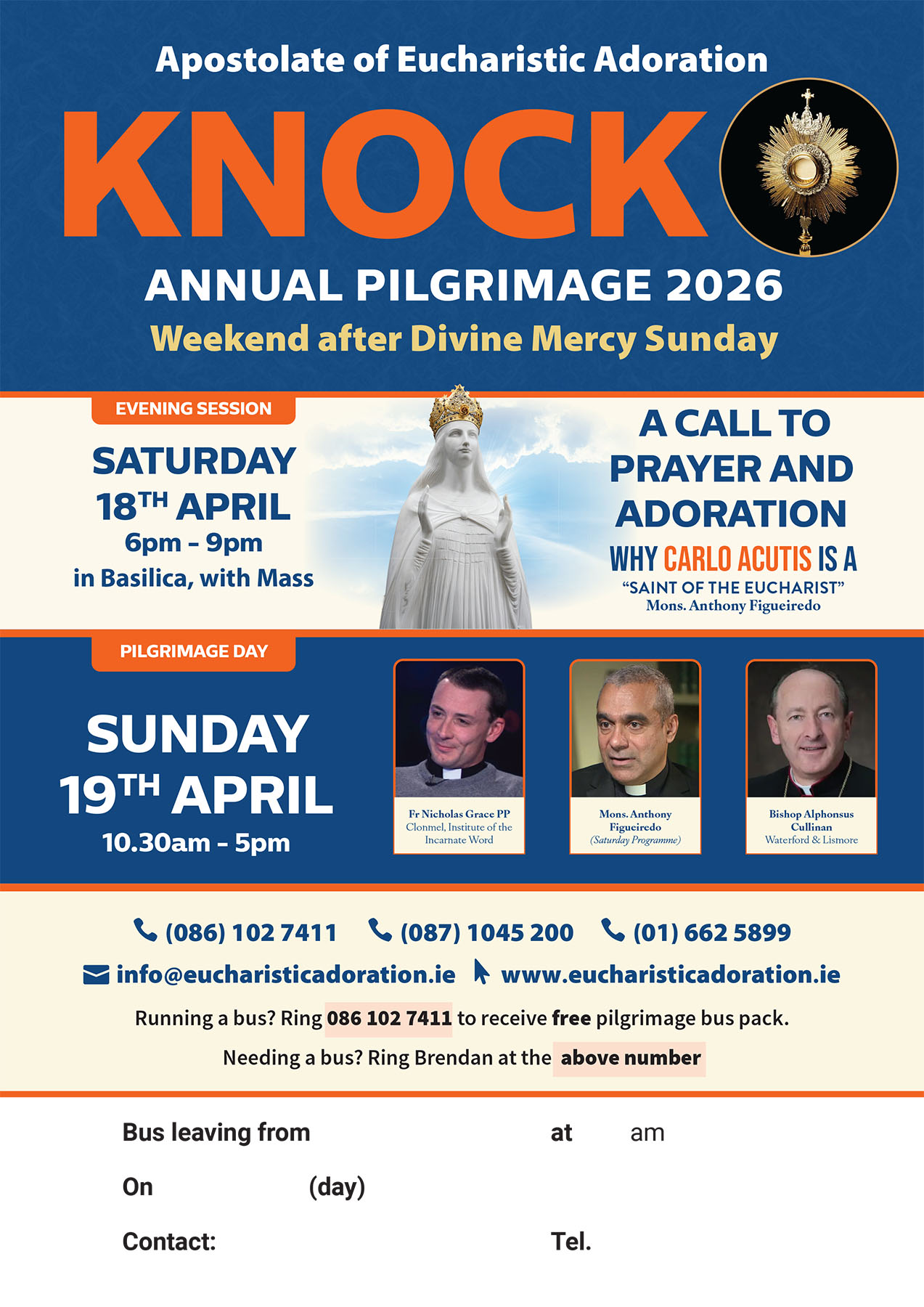 For distribution in Church/Oratory Adoration centres and on Church Noticeboards